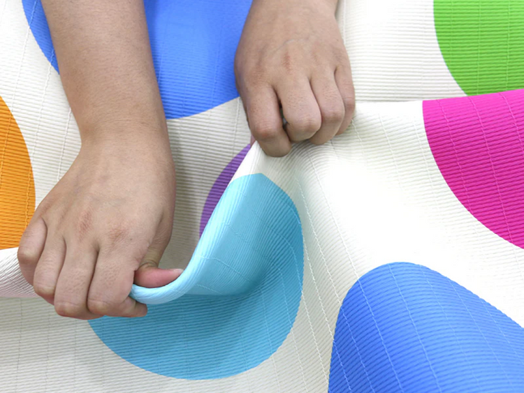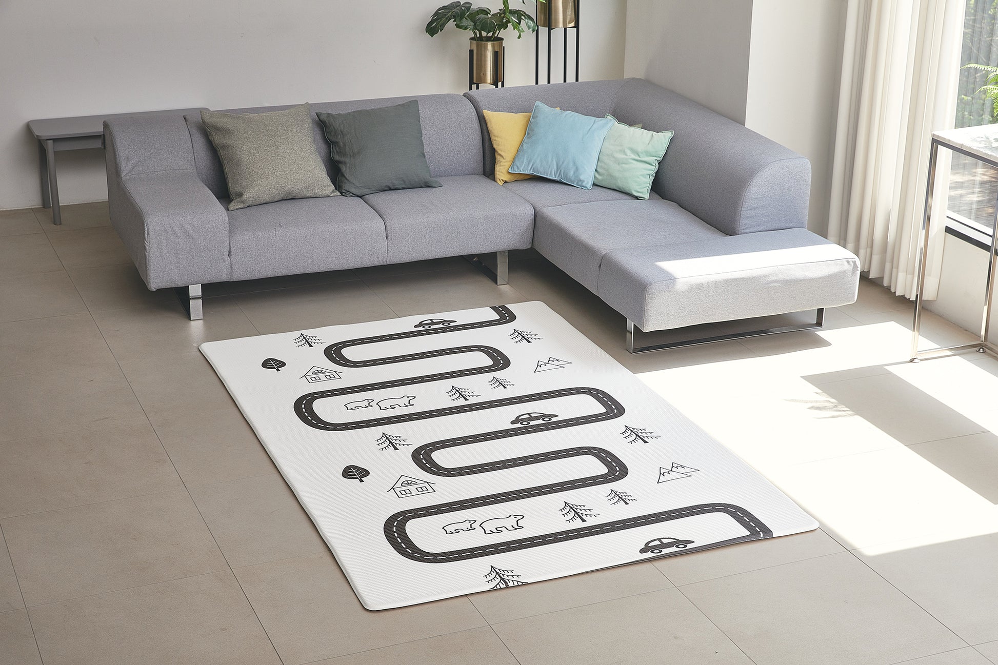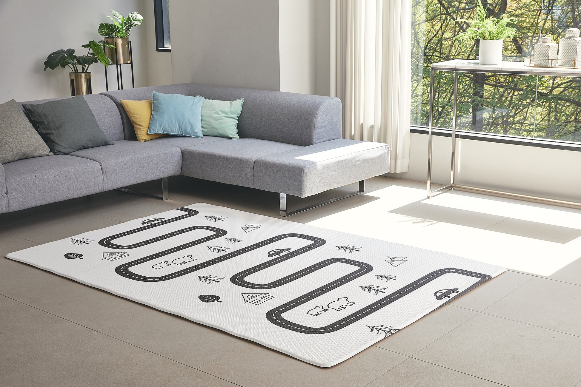 Transform any floor into a safe, stimulating space for baby with this ultra-cushy playmat that absorbs the impact of falls and tumbles as they discover the world around them. Larger than conventional mats, it provides little ones and family members plenty of room to bond and grow. Each mat is reversible, with educational, stimulating illustrations for the baby on one side and an interior design aesthetic on the other. An extra-durable, one-piece design makes it easy to clean, roll away, and enjoy for years to come.