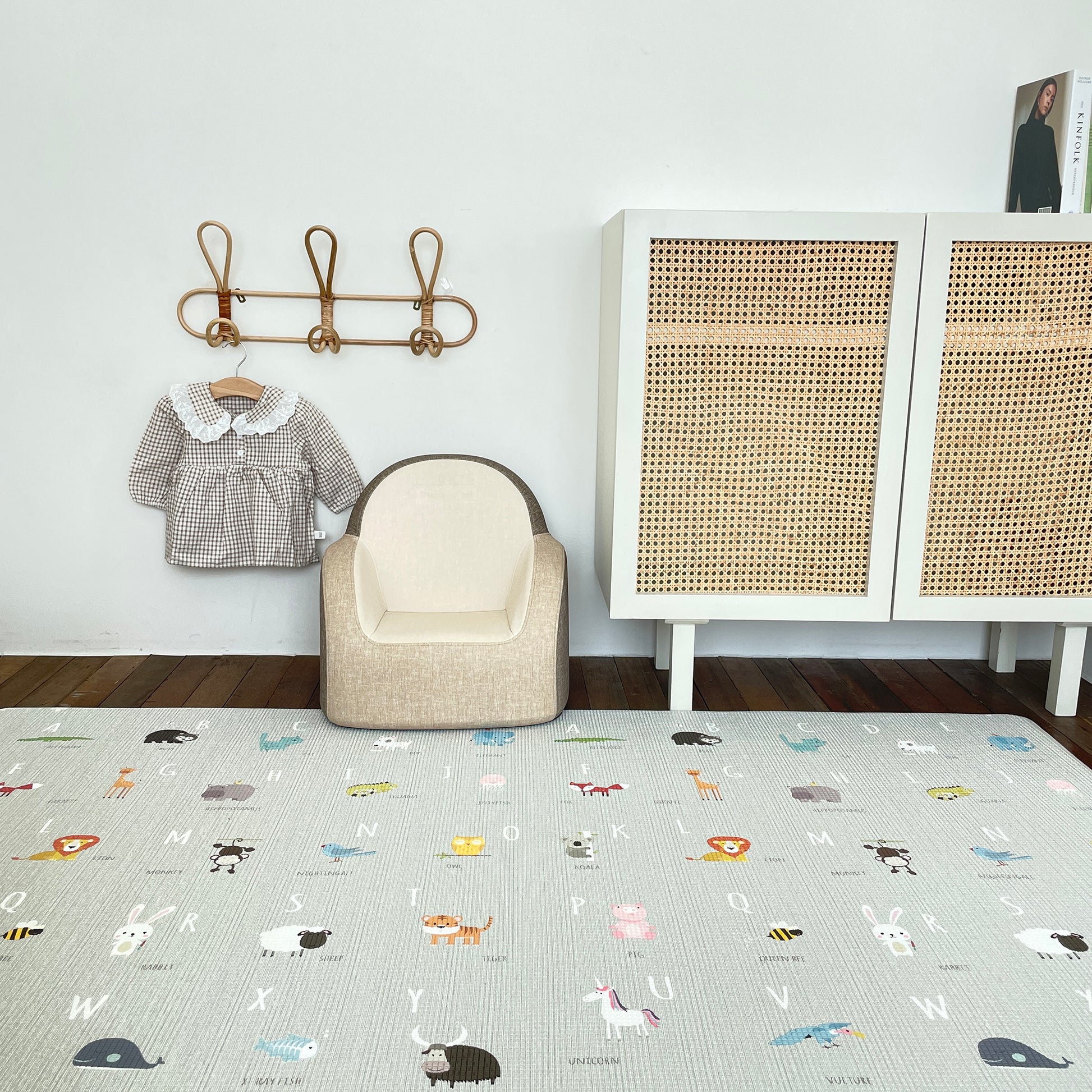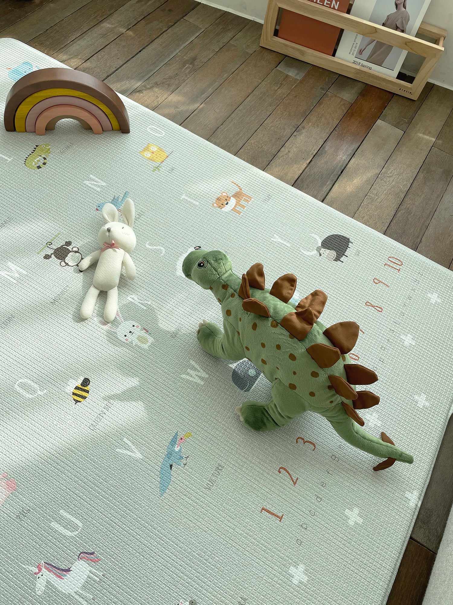 Transform any floor into a safe, stimulating space for baby with this ultra-cushy playmat that absorbs the impact of falls and tumbles as they discover the world around them. Larger than conventional mats, it provides little ones and family members plenty of room to bond and grow. Each mat is reversible, with educational, stimulating illustrations for baby on one side and an interior design aesthetic on the other. An extra-durable, one-piece design makes it easy to clean, roll away, and enjoy for years to come.