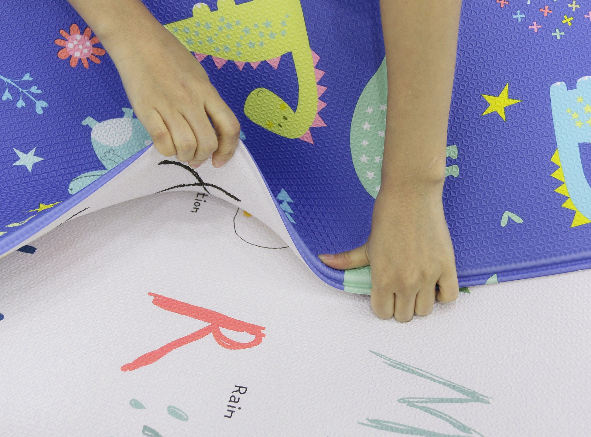 Transform any floor into a safe, stimulating space for baby with this ultra-cushy playmat that absorbs the impact of falls and tumbles as they discover the world around them. Larger than conventional mats, it provides little ones and family members plenty of room to bond and grow. Each mat is reversible, with educational, stimulating illustrations for baby on one side and an interior design aesthetic on the other. An extra-durable, one-piece design makes it easy to clean, roll away, and enjoy for years to come.