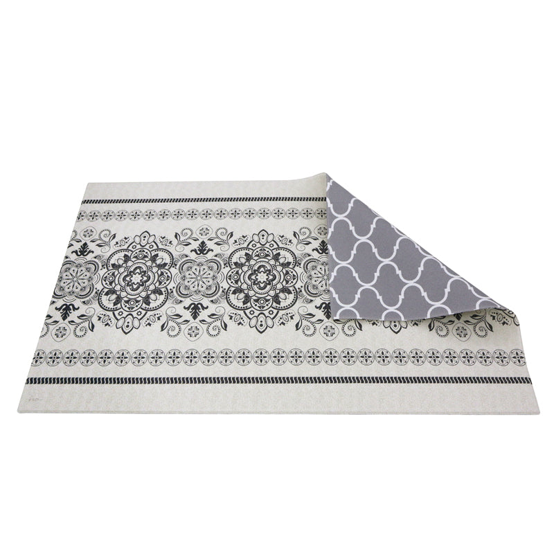 Make a bold statement in your home with the Venetian Reversible Rug. This eye-catching rug features a Venetian design on one side and features a different print on the other. The beautiful hues will add a pop of color to your space.